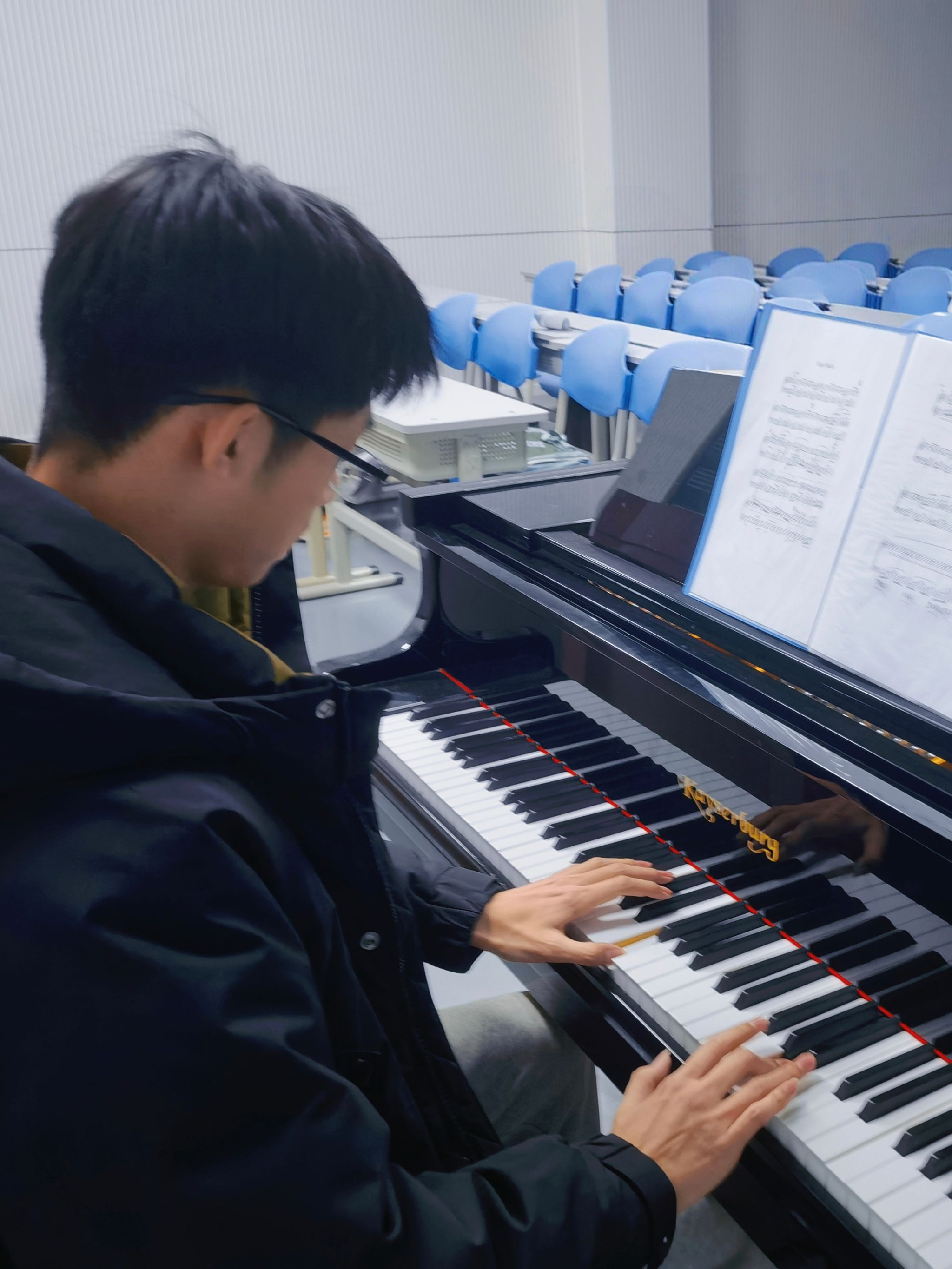 作为计算机专业的学生,指尖第一次落在琴键上时,那种陌生和笨拙,像极了初次面对一行复杂的代码。从枯燥的音阶、琶音开始,每一个音符都需精准“输入”,每一次节奏都要严密“调试”。当指尖终于流畅地奏出《萱草花》的旋律时,我感受到一种与编程全然不同的美妙——代码构建逻辑世界,而音乐直接叩击心灵。这门选修课也让我体会到,严谨的逻辑思维与感性的艺术表达并非对立。它们都需专注、耐心与反复练习,最终都能创造出打动人心的作品。黑白琴键为我打开了另一扇窗,让我在算法的理性之外,触摸到了生活的柔软与诗意。