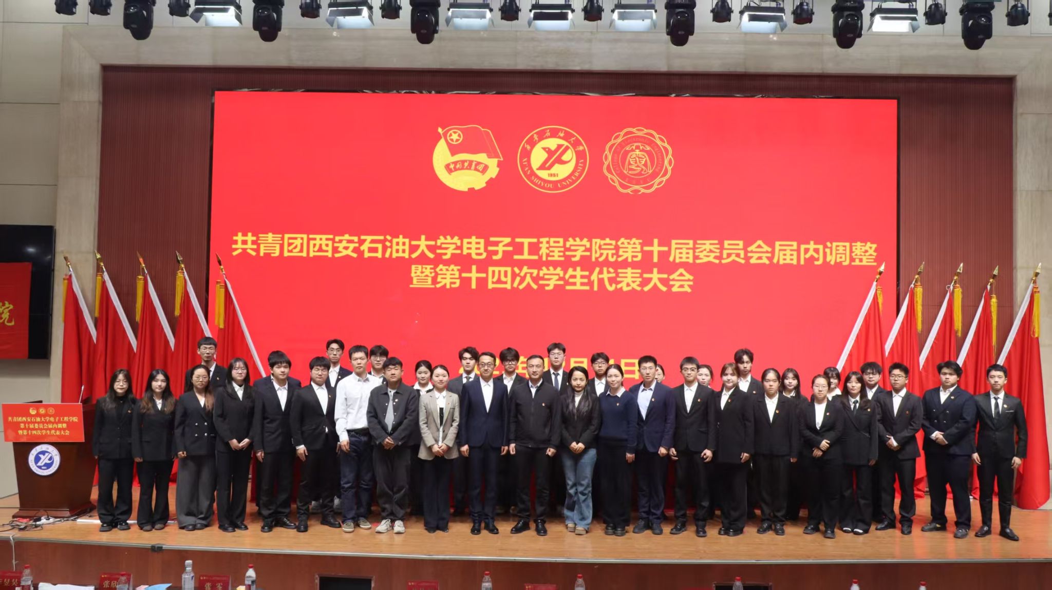 伴随着激昂的团歌,共青团beat365正版唯一官网电子工程学院第十届委员会届内调整暨第十四次学生代表大会顺利闭幕。此次大会为学院团学工作明确了新目标、新方向,新一届团学组织将接续奋斗,以实际行动书写学院团学事业发展的崭新篇章。