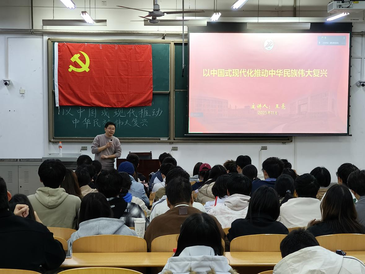 党委学生工作部(处)部(处)长王亮以“以中国式现代化推进中华民族伟大复兴”为题,深入解读了中国式现代化的本质要求与重大原则,系统阐明了其在政治、经济、社会、文化等各领域的深远意义。