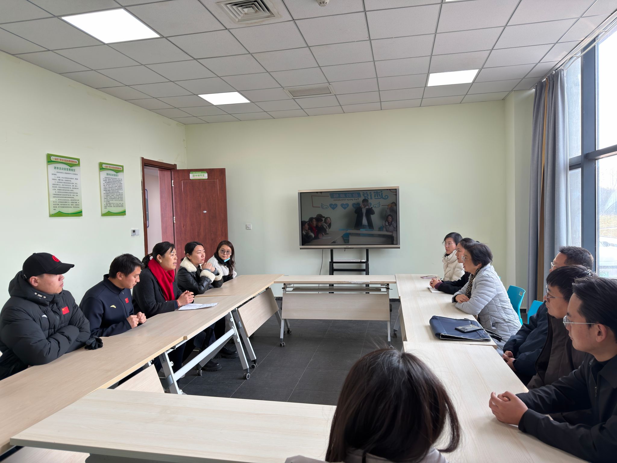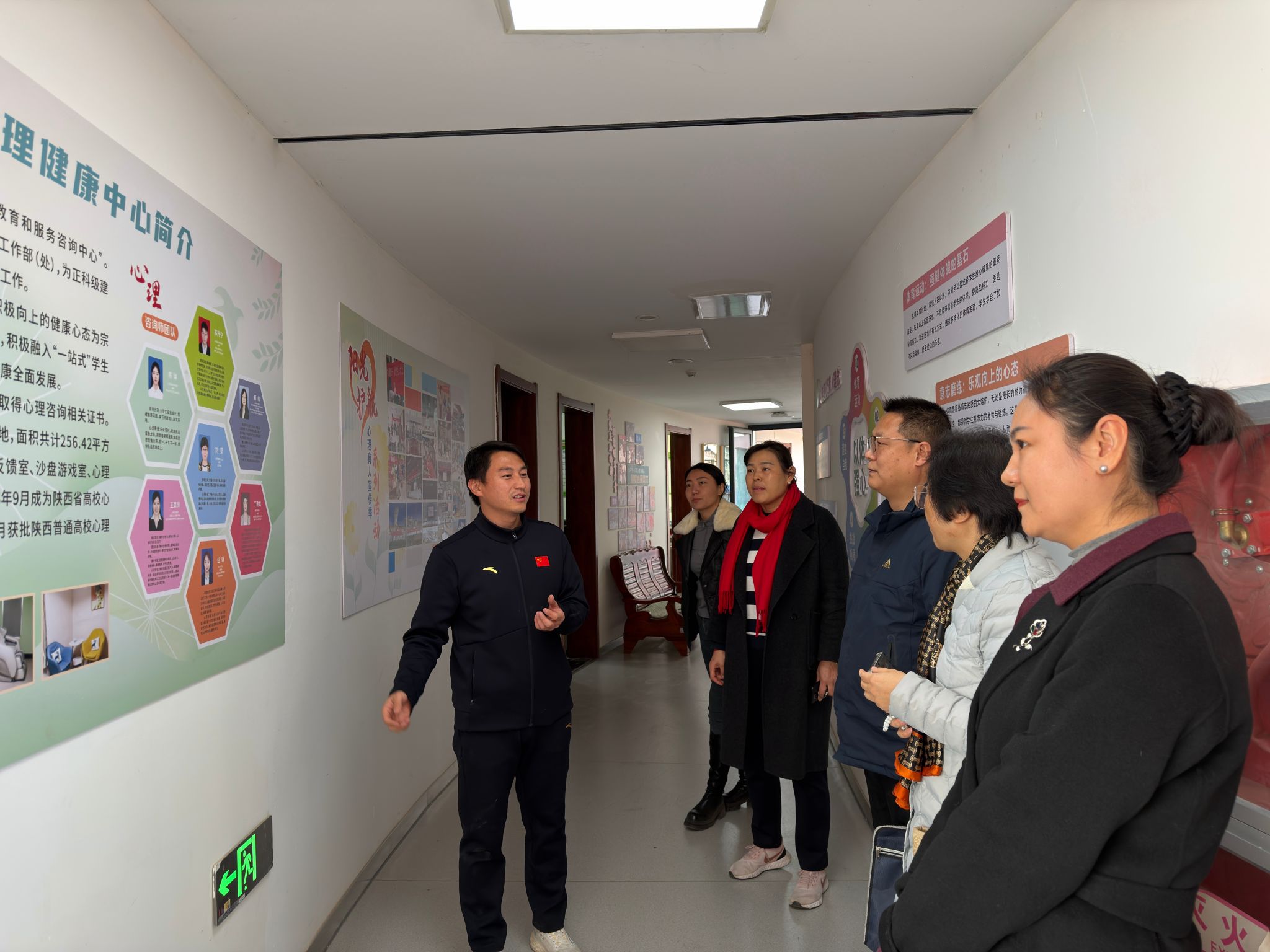 在西安体育学院学工同仁的陪同下,beat365官网一行首先参观了“一站式”学生社区心理健康教育中心。中心功能齐全、环境温馨,将心理健康教育、咨询干预、团体活动、放松减压有机融合于学生生活区域,实现了心理育人工作的前置与下沉。