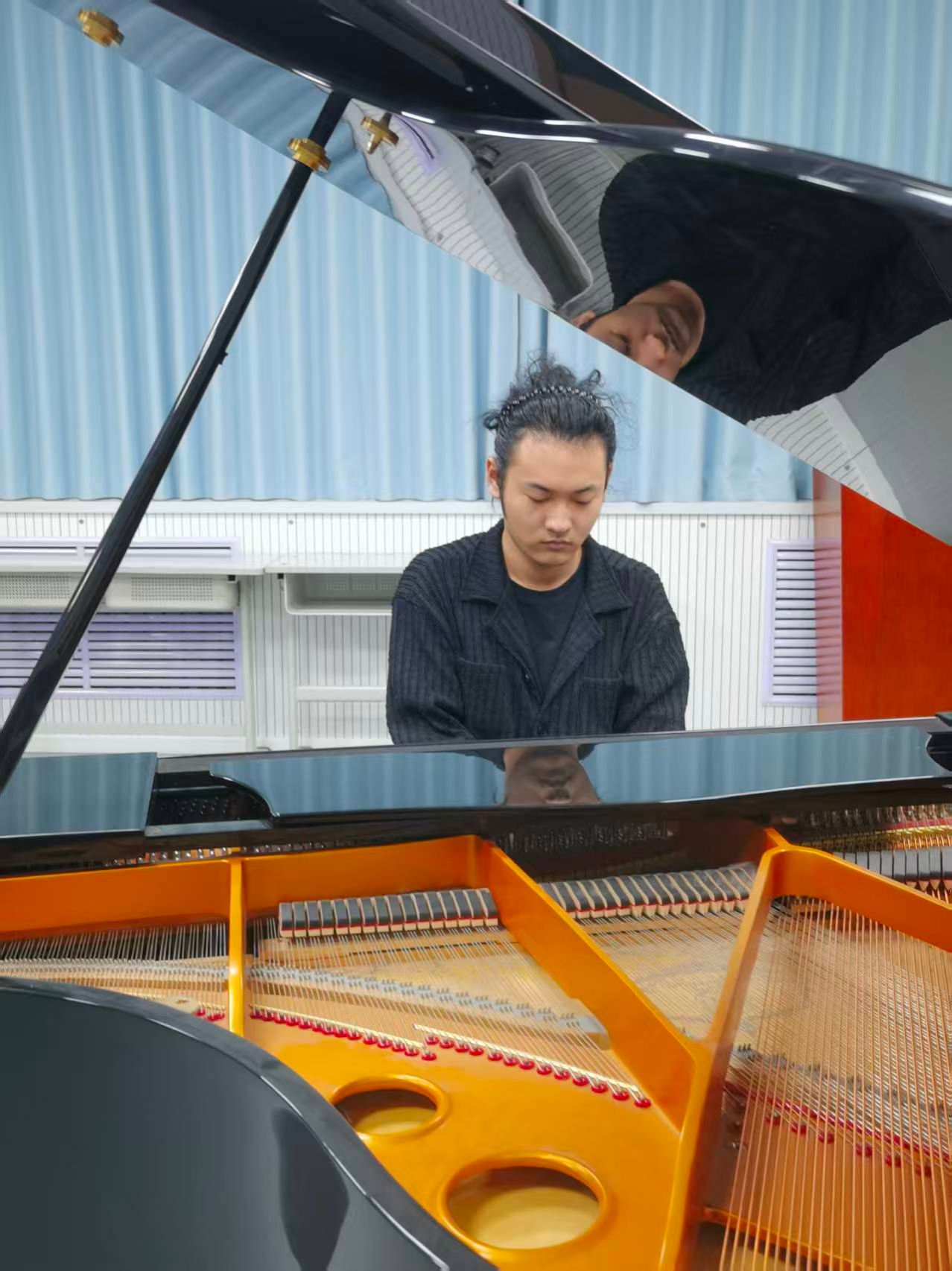 邵一然演奏的张朝作品《努玛阿美》,以“太阳之原”的哈尼族文化意象为核心,通过倍复二部结构的精妙演绎,展现了作品的思乡情怀与民族特色。慢板开篇的轻柔织体勾勒出家乡旖旎风光,快板段落的复调手法与多变和声迸发热烈民族律动,尾声的宁静回归则余韵悠长。演奏者精准把握了西方作曲技法与民族音乐语汇的融合精髓,让“钢琴说中国话”的创作巧思得以充分彰显。作品中对理想家园的向往、对故土的眷恋,既是个人情感的表达,更是中华民族“家国同构”文化传统的生动体现,让观众在音乐中体会到个人与民族、家乡与国家的深厚联结,培育了家国情怀与民族文化认同。这种将民族文化、个人情感与国家命运相连的艺术表达,实现了音乐艺术、美育熏陶与思政教育的深度共振,让青年学子在感受民族音乐魅力的同时,坚定了扎根民族土壤、勇担时代责任的信念。