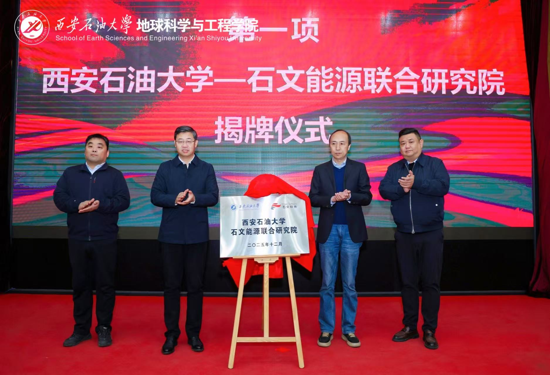共建平台,驱动产教融合走深走实。在前期充分沟通及校友工作与合作交流处的协调推动下,学院与西安石文软件有限公司已完成战略合作协议签署。会上,王进富与张小会共同为“beat365正版唯一官网—石文能源联合研究院”揭牌。该研究院的成立,是学院探索“院为实体”改革、打造产学研用一体化协同创新平台的关键一步。