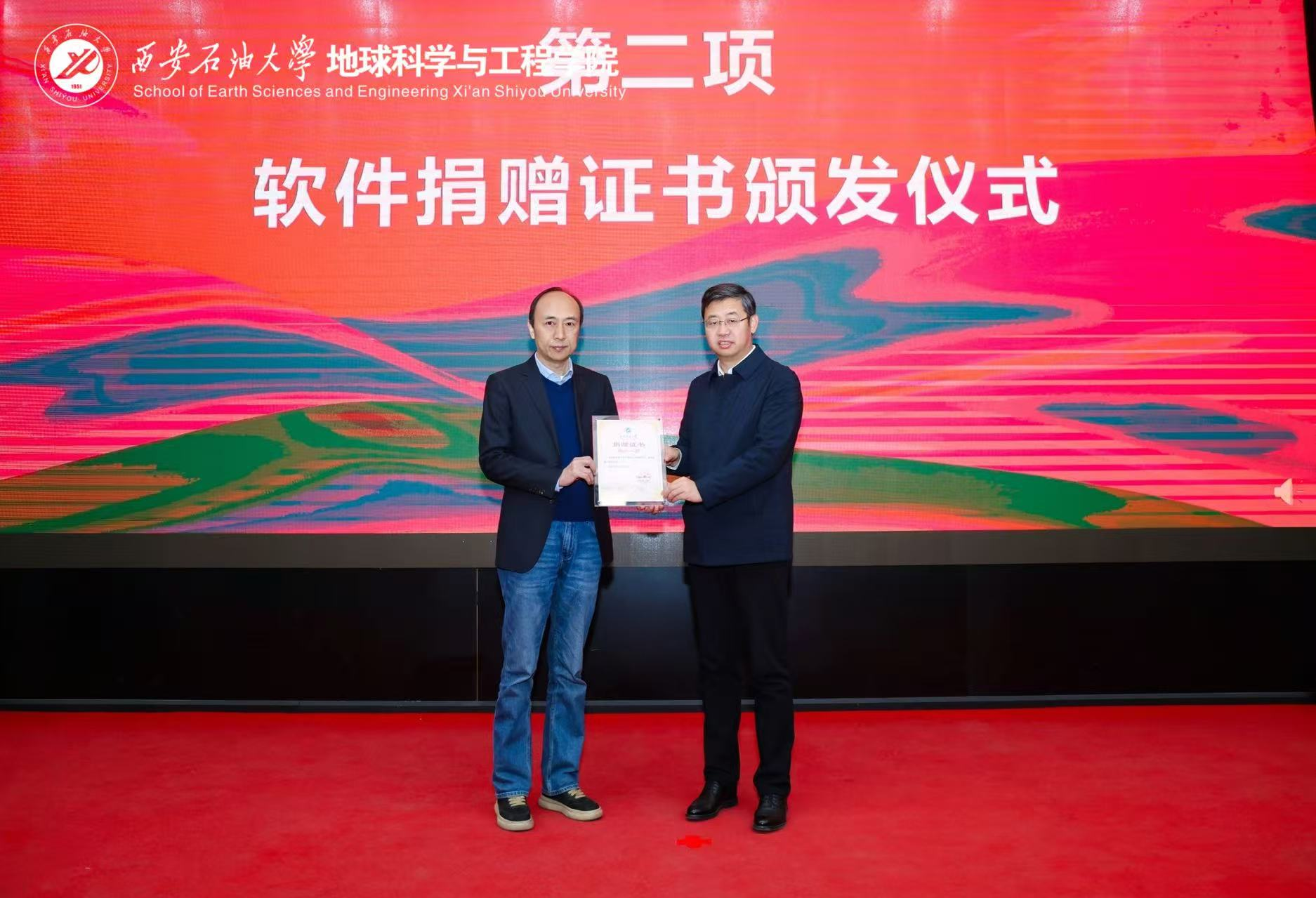 作为合作的实质性支撑,石文软件有限公司向学院捐赠了市场价值叁百万元的自主知识产权专业软件,王进富代表学校向张小会颁发了捐赠证书。