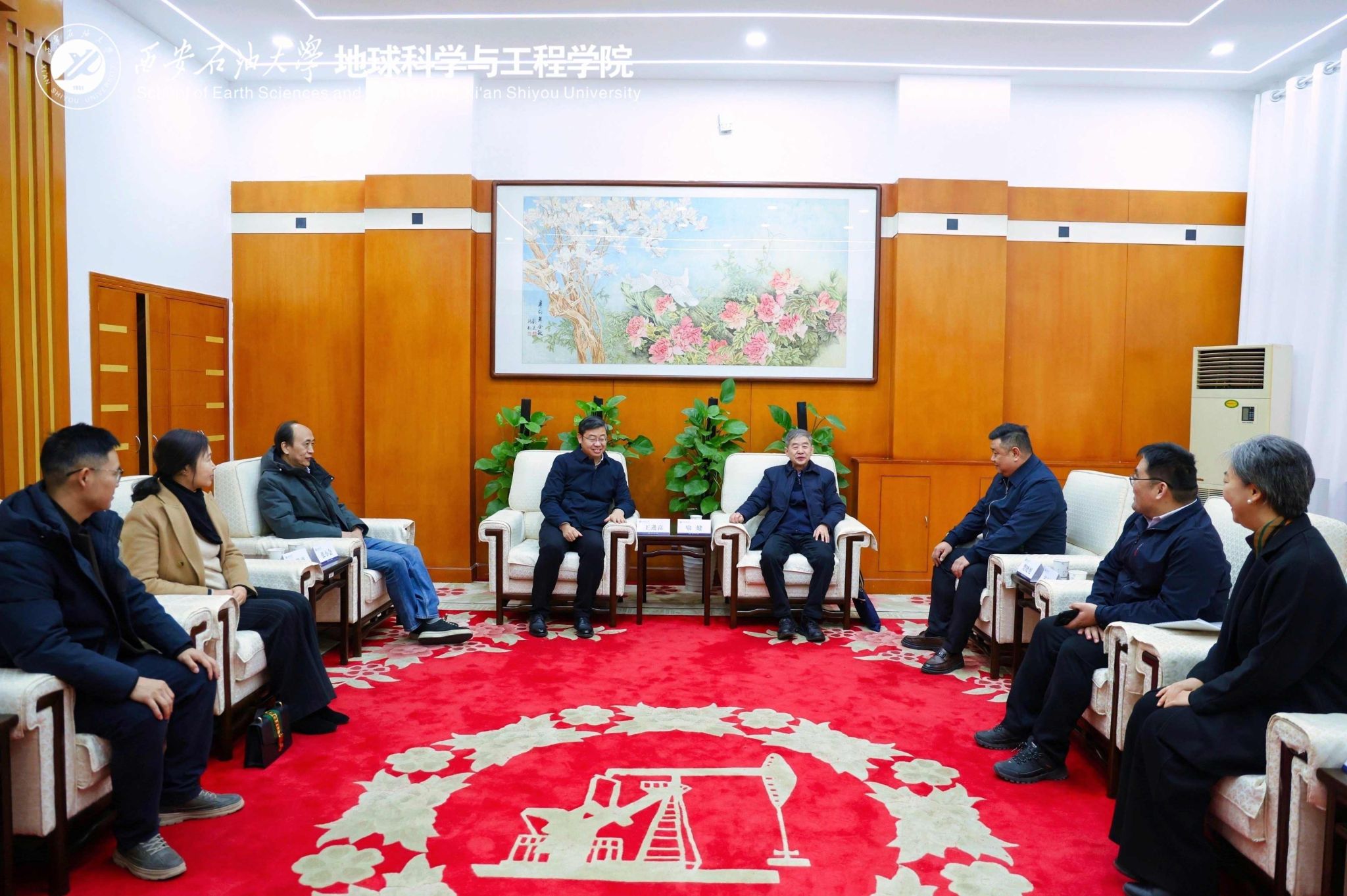 会前,王进富在贵宾室会见了喻健、张小会一行,并围绕深化产教融合、服务国家能源战略、培养行业急需人才等进行了深入交流,就推动联合研究院做实做强达成共识。校友工作与合作交流处、地球科学与工程学院陪同会见。
