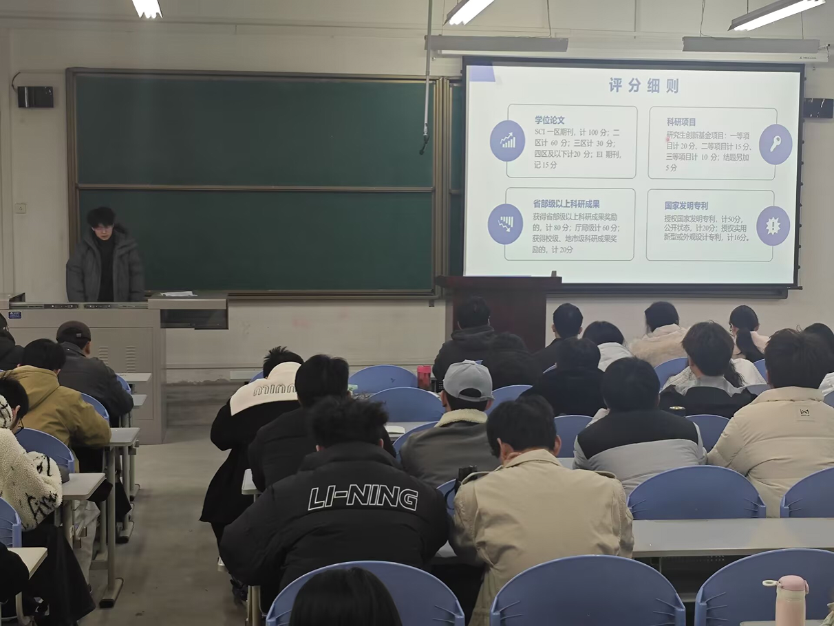 按照学校研究生工作部关于2025年研究生学风建设暨学术文化活动月的安排部署,12月23日下午,理学院2025年优秀研究生经验交流会在鄠邑校区博览楼A124教室顺利举行。研2023级国家奖学金获得者王满银、李微、乌嘉诚,研2025级全体同学参加,研究生辅导员马小梅主持会议。