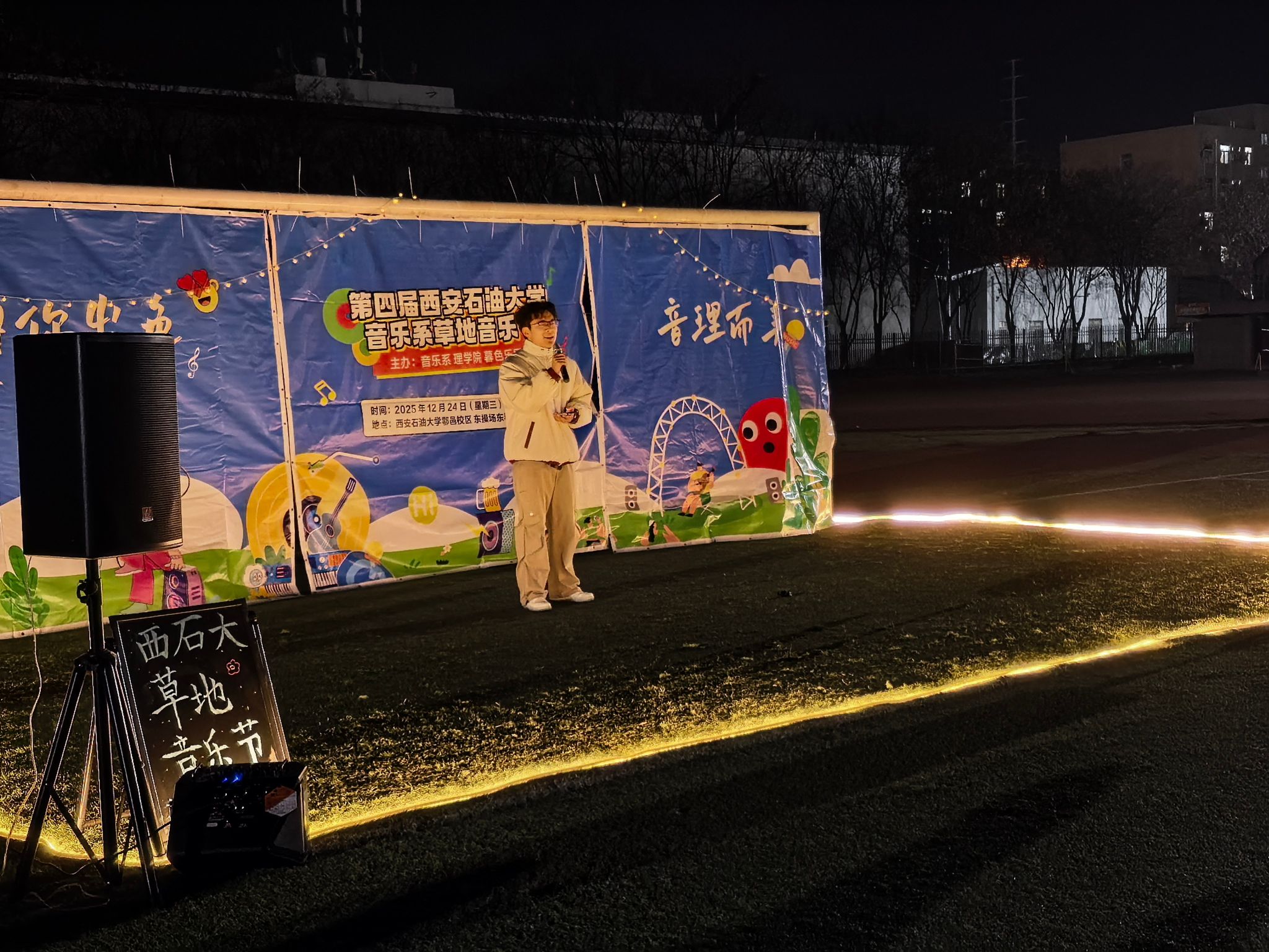 迎着晚风,踏着青草。星空为幕,草地为席。音浪嗨到顶,青春不设限!12月23日晚,音乐系、理学院举办的“因你出色,音理而美”草地音乐节在鄠邑校区东操场精彩上演。理学院团委书记庞波、辅导员林晔、音乐系新生辅导员张健和200余名学生共同观看了此次音乐节。