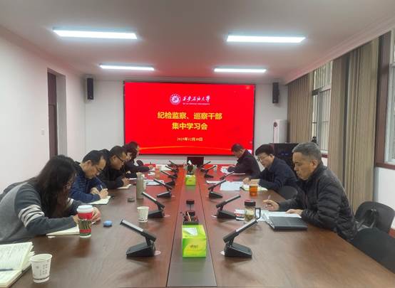 12月30日下午,纪检巡察干部2025年第27次集中学习会在鄠邑校区办公楼第四会议室召开。校党委副书记、纪委书记、监察专员王辉强主持学习会。纪检监察机构、党委巡察工作办公室全体干部参加会议。