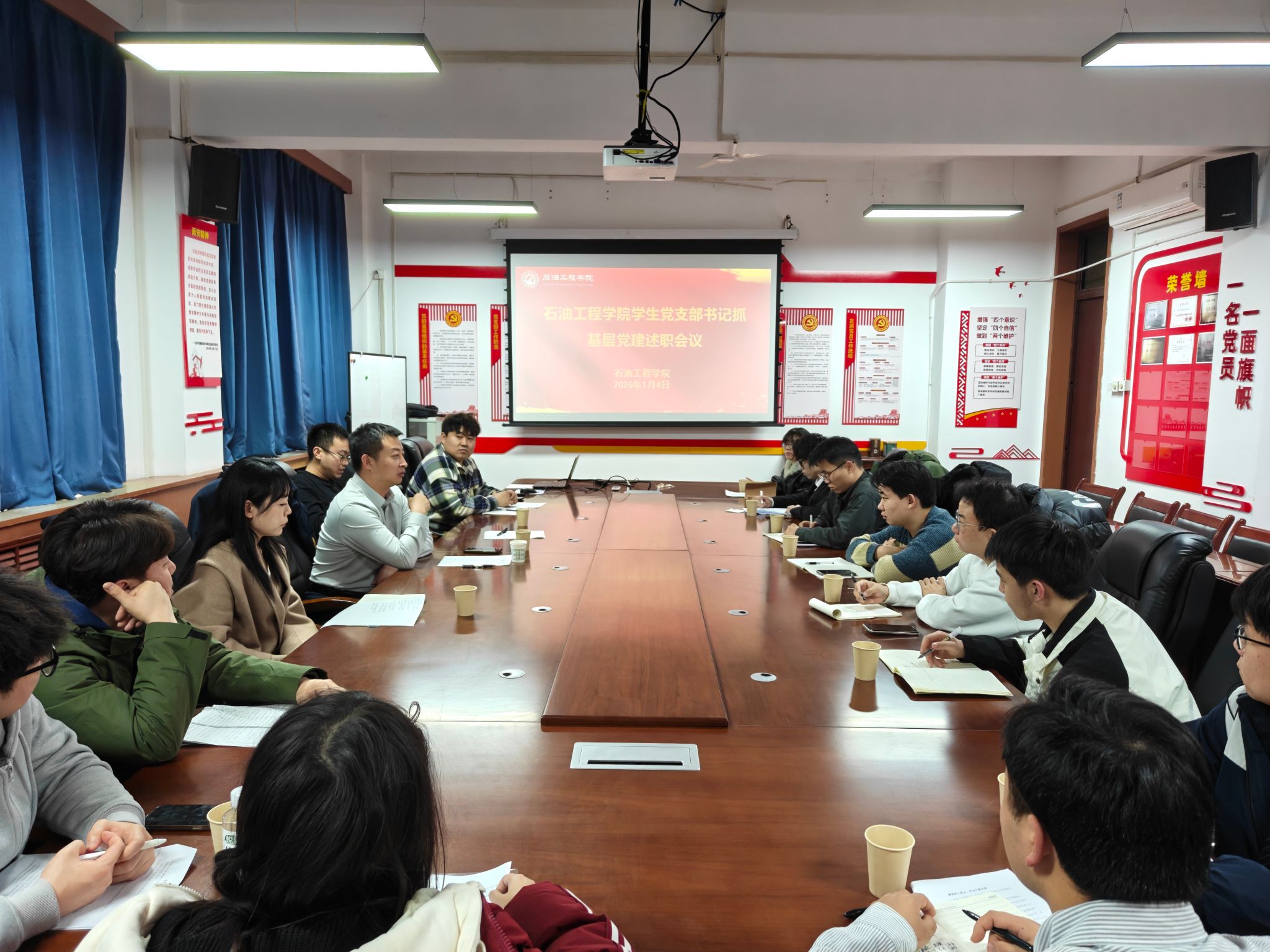 1月4日下午,石油工程学院在雁塔校区一教603会议室召开2025年度石油工程学院学生党支部书记抓党建述职评议会议。石油工程学院党委副书记艾二鑫、专职组织员宋兴淼、辅导员余靓豪、学院学生党建办公室主任及学院全体学生党支部书记参会。