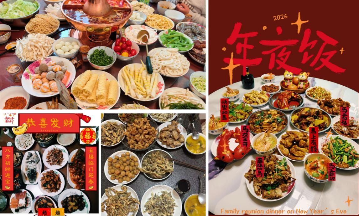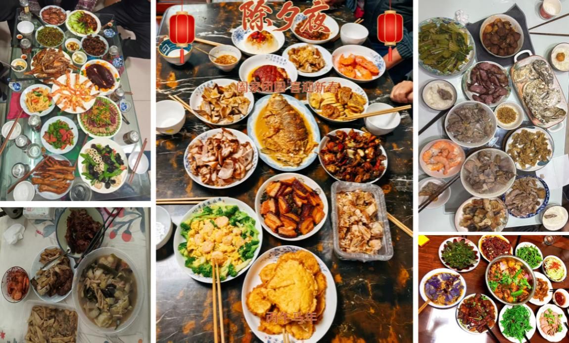 云端相聚,美食传情。春节期间,学院工会依托微信平台举办“晒美食·庆团圆·迎新春”线上美食分享活动,鼓励学院教师用镜头分享自家的年夜饭、家乡特色美食及春节家宴场景。除夕之夜,全院教职工隔屏相会,在欢声笑语中迎接丙午马年。从北方的饺子、酱肘子到南方的年糕、盆菜,从东部的海鲜大餐到西部的腊肉、火锅——镜头定格的不仅是舌尖上的乡愁,更是中华饮食文化的生动传承。老师们用影像记录年味记忆,在方寸屏幕间传递祝福、温暖彼此。活动以美食为媒,以文化为核,让天南海北的年味在云端交融,既丰富了假期生活,也增强了学院凝聚力。