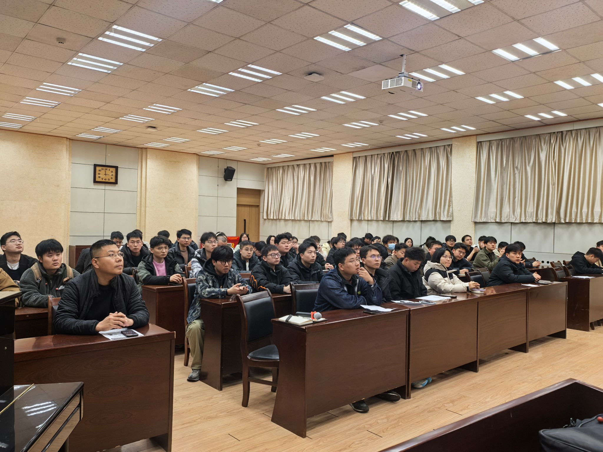 在互动交流环节,同学们踊跃提问,就赛题理解、数据解读、方案创新点挖掘等问题与老师们展开了深入探讨。与会教师耐心解答,并鼓励学生以严谨求实的态度打磨作品,力争在大赛中展现石工学子的专业素养与创新风采。