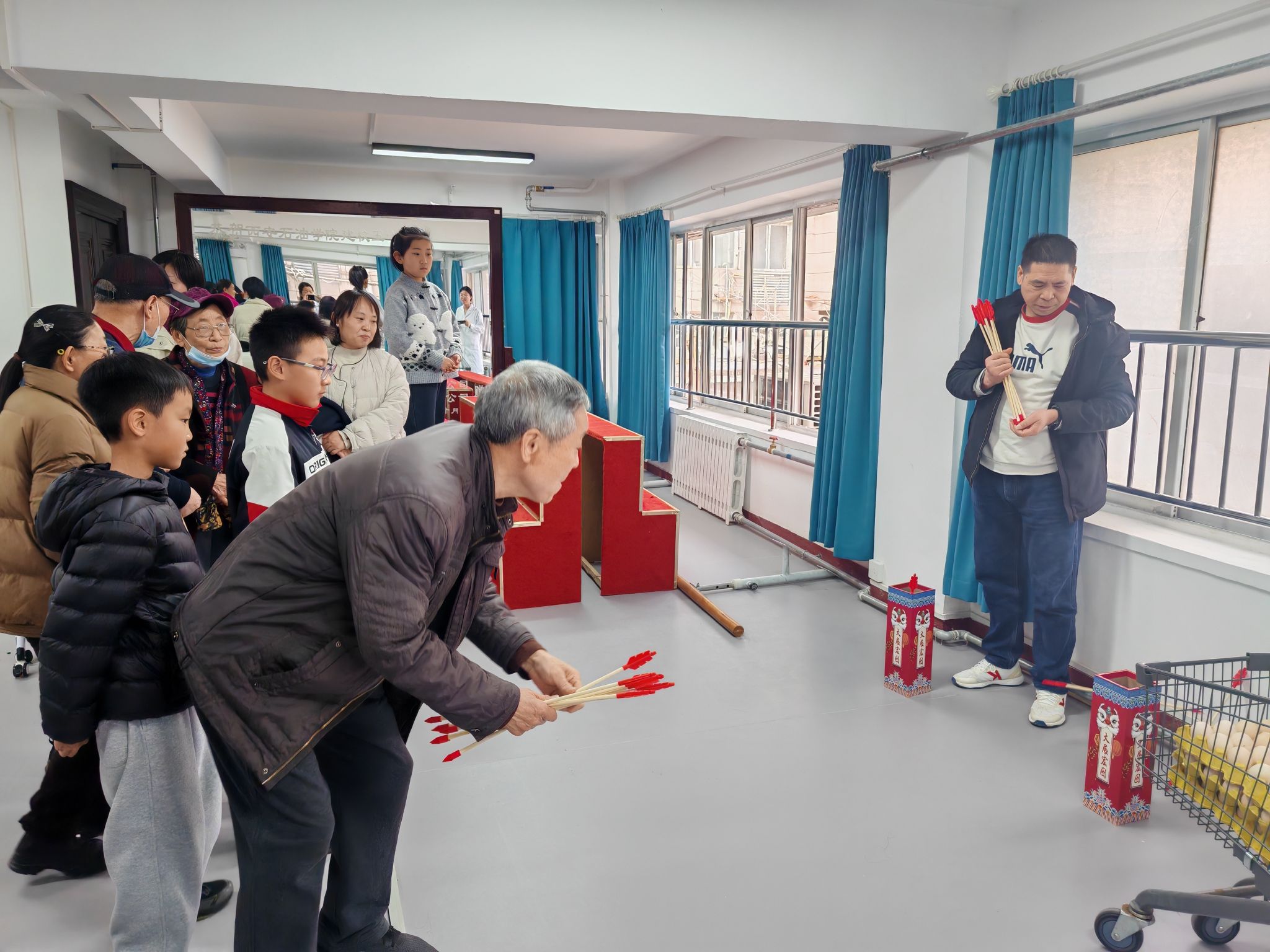 活动设置猜灯谜、投壶等趣味环节,谜题融入传统文化与健康知识,现场气氛热烈。校医院多科室医护团队现场提供免费血压血糖检测、中医诊脉、耳穴压豆、针灸等服务,专家一对一解答健康疑问;急救人员现场教学心肺复苏、海姆立克急救法,并指导居民实操体验。预防保健科同步宣传HPV及带状疱疹疫苗惠民政策与相关知识。