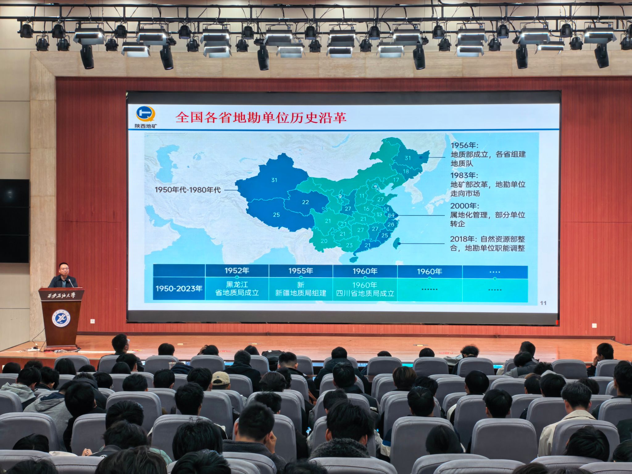 为进一步强化校企协同育人机制,加强学生职业生涯教育,切实提升学生行业(专业)认知与就业竞争力,3月11日,地球科学与工程学院在鄠邑校区弘石报告厅举办“导师面对面”专题讲座。陕西地矿集团有限公司首席专家,陕西地矿物化探队有限公司党委委员、总工程师刘建利应邀作“地矿行业发展趋势与就业机遇解析”专题讲座。学院各年级辅导员、2023级全体学生和低年级学生干部参加,学院党委副书记董丙剑主持。