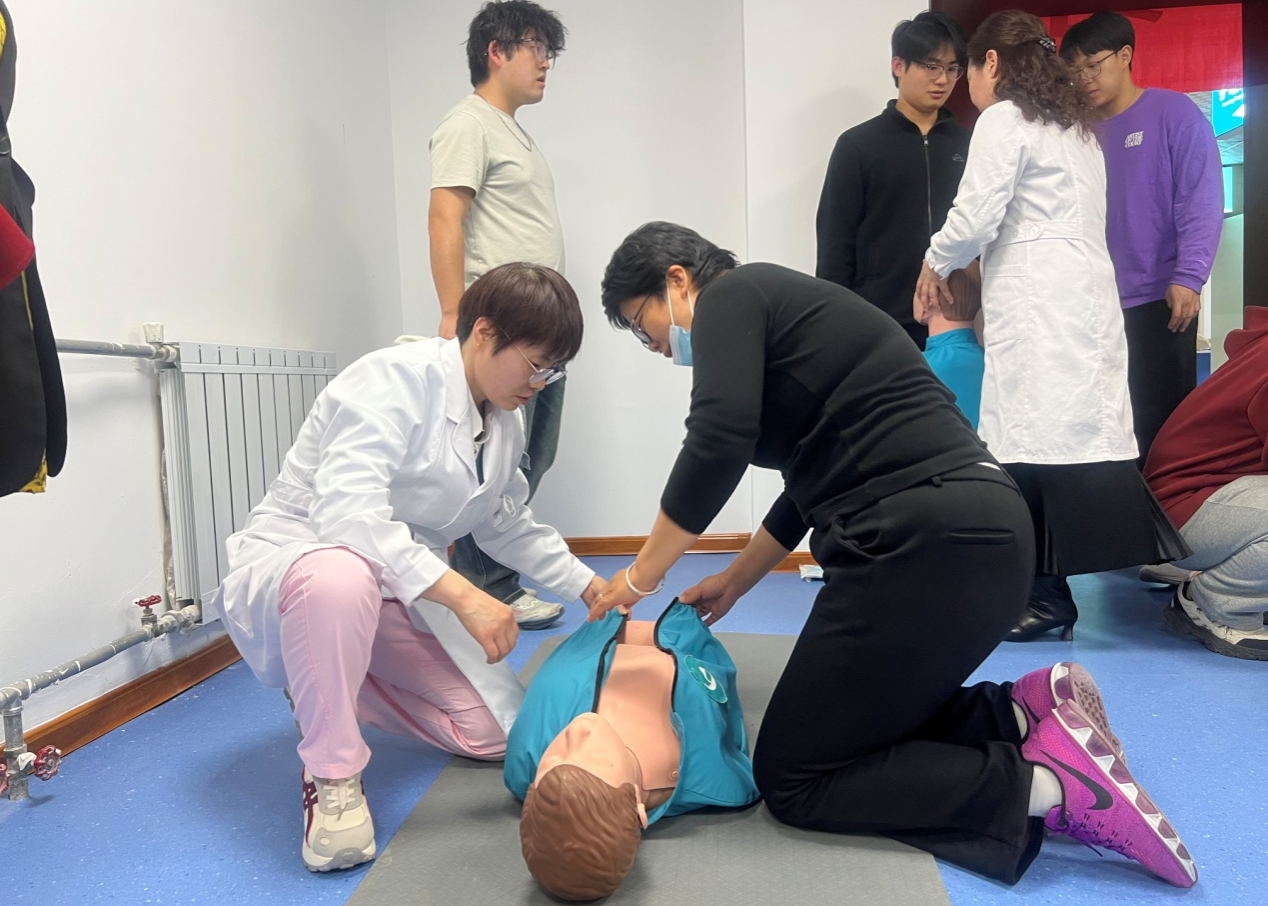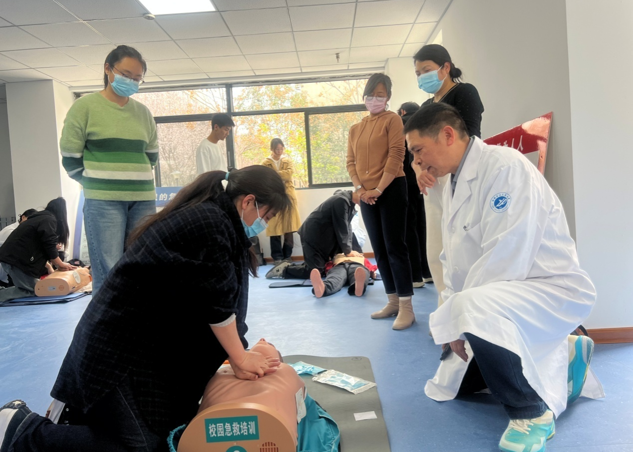 校医院副院长李文霞强调,应急救护是守护生命的“最后一道防线”,熟练掌握规范急救技能,对保障校园安全、高效应对各类突发状况具有至关重要的意义。目前,学校已实现多校区AED设备全域覆盖布设,本次培训是完善校园急救体系、织密校园安全防护网的关键一环。她希望全体学员珍惜学习机会,切实将所学知识转化为守护生命的实战能力,主动担当校园安全“第一响应人”。