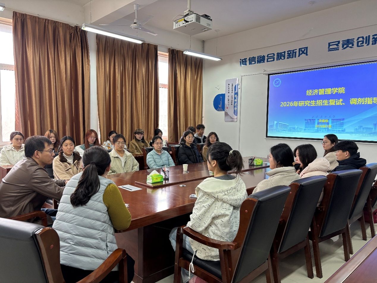 为助力2026届毕业生在考研复试及调剂阶段掌握技巧、增强信心,经济管理学院于3月13日下午在鄠邑校区崇文楼305室召开2026届毕业生考研复试调剂指导交流会。本次交流会由学院副院长李春霄主讲,学生工作办公室副主任张硕、2026届辅导员及考研上线学生参加。