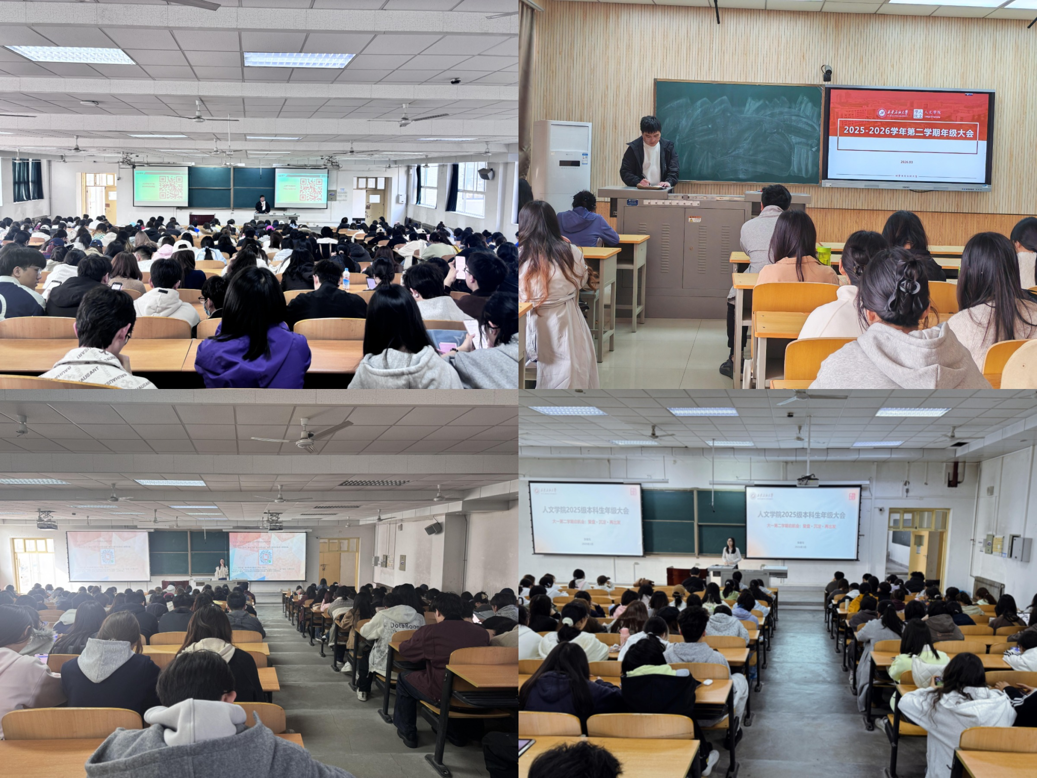 为全面总结上学期学业成效,筑牢校园安全防线,明晰新学期奋斗目标,切实推进学风建设与学生成长成才。3月11日,人文学院各年级在鄠邑校区博览楼A134、A139、A239及崇文楼233召开2026年春季学期第一次年级大会。会议由各年级辅导员主持,全体学生参会。