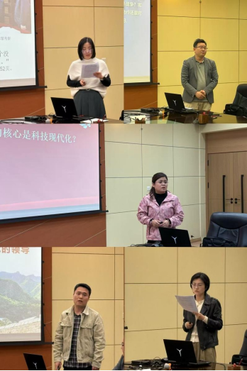 在教学展示环节中,王亮亮、潘德润等教师依次围绕中国式现代化、世界未有之大变局等主题进行了10分钟左右的授课展示。教师们紧扣教材体系,结合时政热点和学生认知特点,通过问题导入、案例分析、理论阐释、数据展示等多种方式,呈现了各具特色的教学设计和课堂风格。