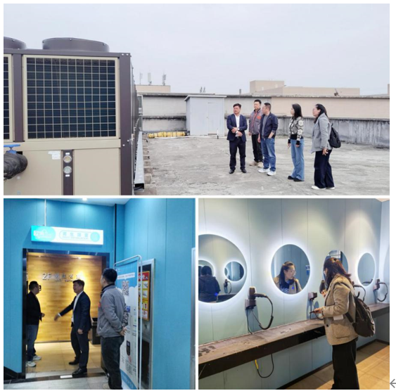 工作人员重点查看了设施运行、环境卫生、通风照明、供水排水系统,以及空气源热泵主机、循环泵、管道保温、电控等关键部位,现场逐一核对设备巡检记录、水质水温监测台账及应急处理预案。检查整体情况良好,但也发现如地面积水、置物架清洁不到位等卫生与管理细节问题。