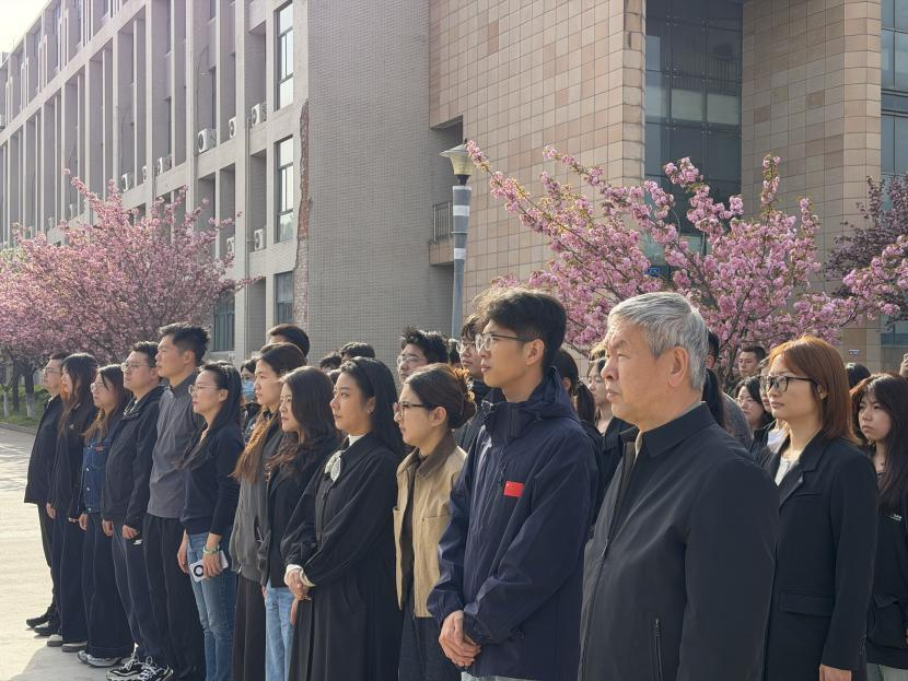 为深切缅怀革命先烈,传承红色基因,厚植青年学子家国情怀,4月6日上午,学生工作部在鄠邑校区杜斌丞雕像广场隆重举行了“缅怀革命先烈 赓续红色血脉”清明节追思杜斌丞烈士专题微党课活动。学工干部代表及学生代表共50余人参加活动,共同追思烈士功绩,汲取奋进力量。