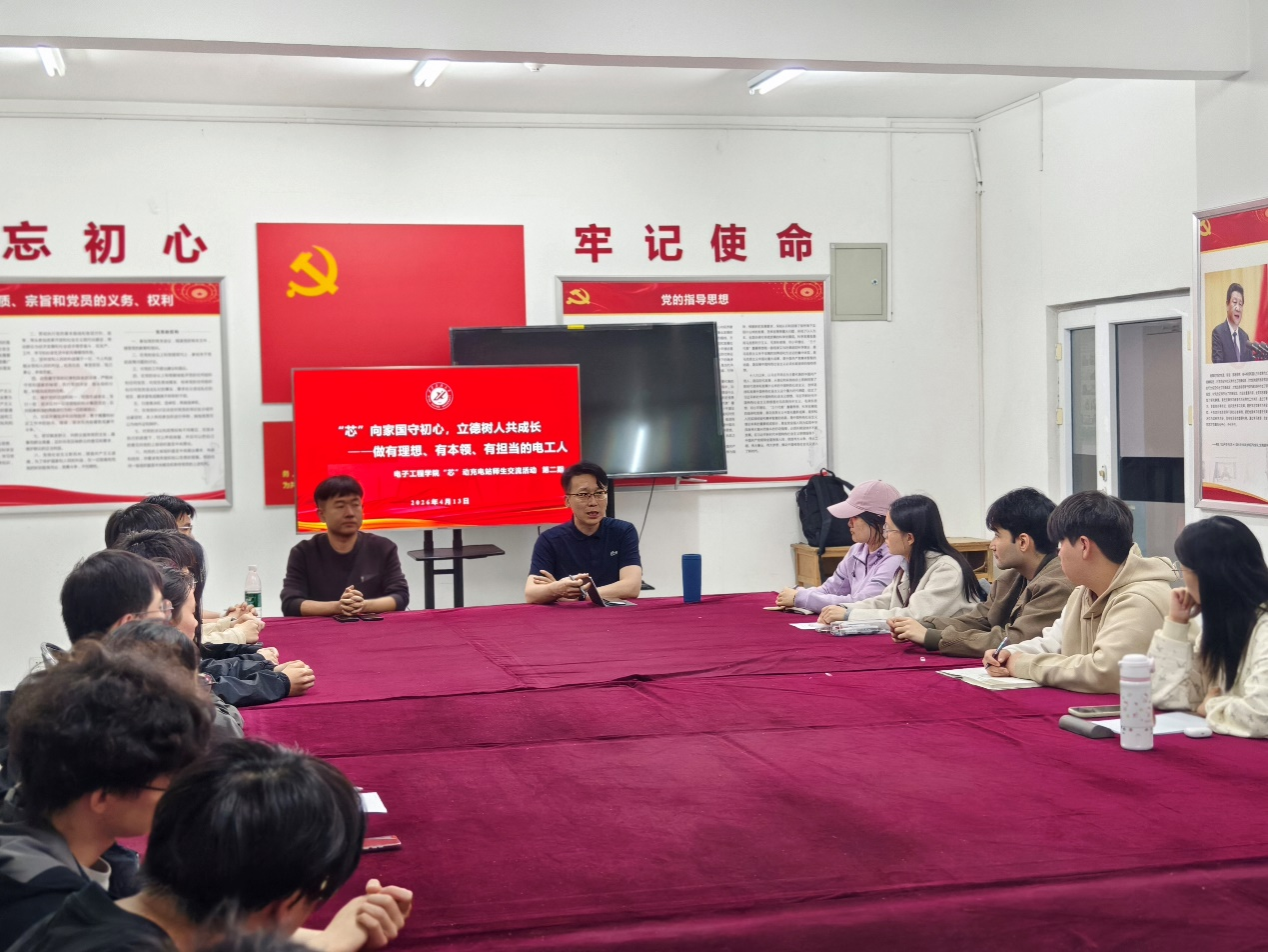 为持续深化一站式学生社区建设,畅通师生沟通渠道,4月13日晚,电子工程学院在鄠邑校区12号学生公寓楼“先锋领航”党员活动室举办第二期“‘芯’动充电站”师生交流活动。学院院长李飞与20余名学生代表面对面交流座谈,辅导员张零主持活动。
