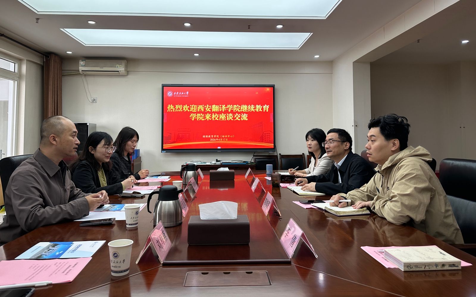 4月17日上午,西安翻译学院继续教育学院副院长刘远征一行4人来校座谈交流,beat365官网继续教育学院副院长丁昌峰及相关部门负责人参加会议。