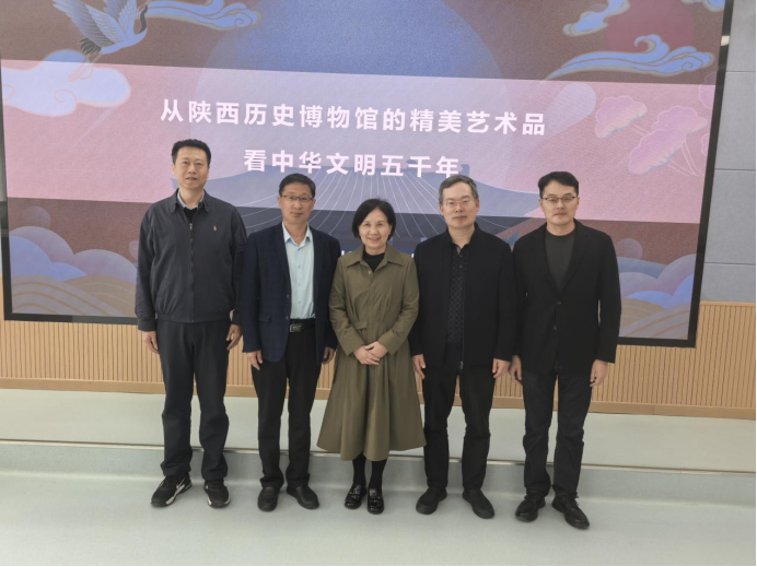 讲座中,庞雅妮馆长从陕西独特的地理历史位置切入,深刻阐释了陕西作为“人类重要起源地、中华文明重要诞生地、十四朝建都之地、丝绸之路东方起点”的深厚底蕴。她以陶器、玉器、青铜器、金银器、壁画、陶俑、瓷器等七大类精美艺术品为主线,结合陕西历史博物馆丰富的馆藏珍品,生动讲述了文物背后蕴含的中华文明发展脉络。从彩陶上的鱼鸟交融揭示炎黄部落融合,到玉器承载的敬天法祖礼乐思想,从青铜礼器体现的秩序与王权,到金银器见证的唐代开放包容与中西文化交流。