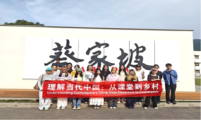 中文专业的吴宜霏同学分享了她的感悟:“今天我们前往蔡家坡村开展研学活动,实地参观考察了特色乡村新业态。行走在蔡家坡村中,古朴的乡村风貌与创意艺术氛围相互交融,让人耳目一新。土锤咖啡将乡土元素与新潮文化巧妙结合,依托乡村原有资源创新发展文旅产业,打破了传统乡村的发展模式,让我真切见识到艺术赋能乡村、文旅助力乡村振兴的生动实践。老旧建筑改造、本土文化创新、特色业态打造,每一处细节都展现着乡村发展的新思路与新活力。此次研学之行,让我走出课本、贴近现实,开阔了眼界,也明白了创新与融合的重要意义。”被采访人娜菲莎坦言:“站在终南剧场用英文说出自己的感受,那一刻我觉得英语不再是考试科目,而是连接乡村与世界的桥梁。”
