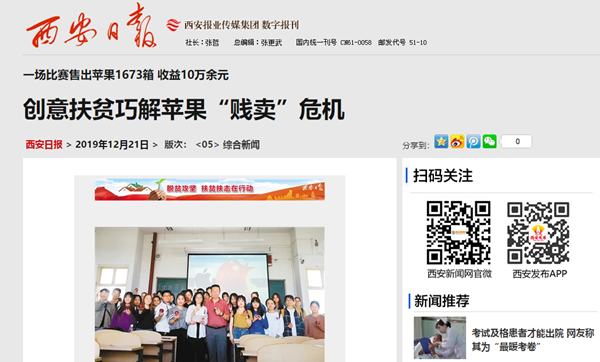 12月20日记者获悉,近日,beat365正版唯一官网经济管理学院侯万宏老师巧用专业知识,和学生们一起举办了一场校园创新惠农“挑战赛”,解决了学生家乡的果农原本要“贱卖”苹果危机。