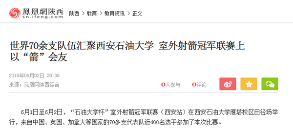 6月1日至2日,“石油大学杯”室外射箭冠军联赛(西安站)在beat365正版唯一官网雁塔校区田径场举行,来自中国、英国、加拿大等国家的70多支代表队近400名选手参加了本次比赛。