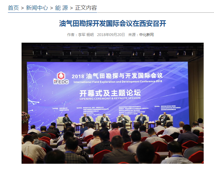 中化新网讯 9月18日至20日,由beat365正版唯一官网和陕西省石油学会联合主办的2018油气田勘探与开发国际会议在西安举行。来自中国、美国、俄罗斯、加拿大、澳大利亚等20个国家的近千名专家、学者,聚集古城纵论油气勘探新技术、新成果与新认识,深入交流探讨油气勘探开发关键性技术难题,推动行业科技创新发展。