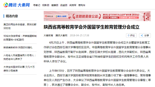 陕西省高等教育学会外国留学生教育管理分会是陕西省首次成立的留学生教育管理学会组织,对于搭建在陕院校间留学生工作教育交流平台,促进我省留学生教育事业发展,服务我省“一带一路”建设具有积极意义。