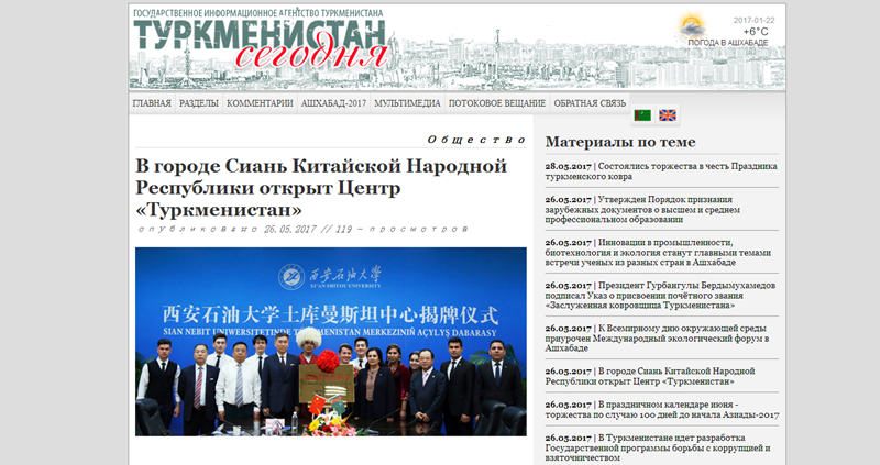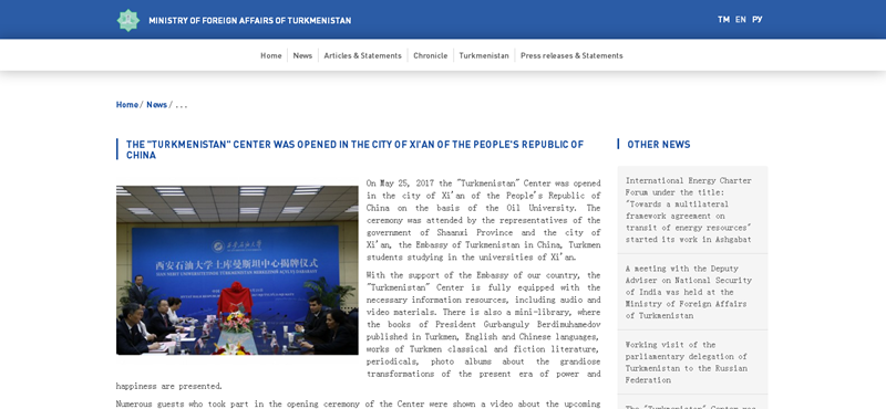 日前,beat365官网成立了土库曼斯坦中心,土库曼斯坦等国外官方媒体纷纷对此事进行了报道。