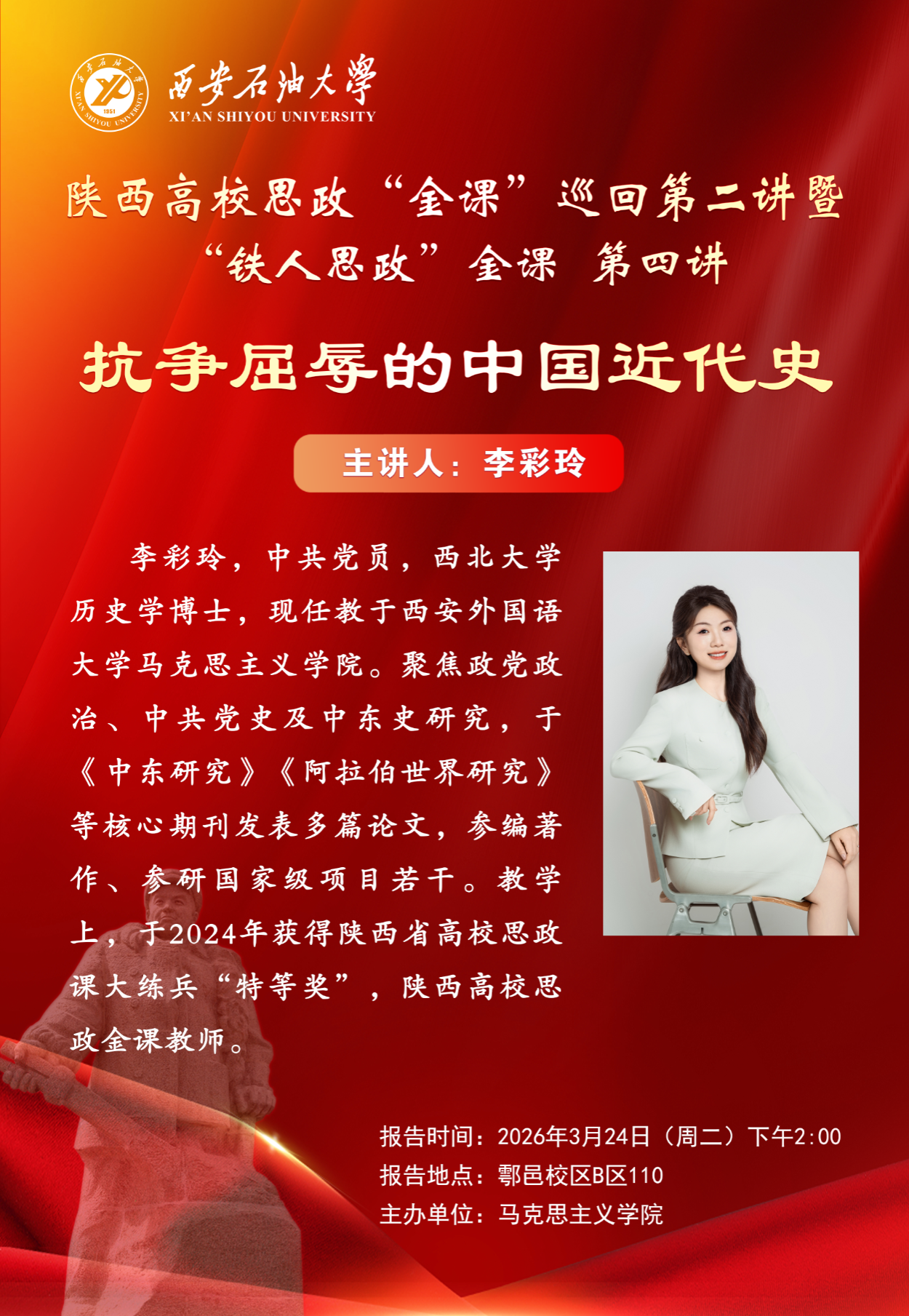 报告地点:鄠邑校区地科院“一站式”学生社区16号学生宿舍楼226