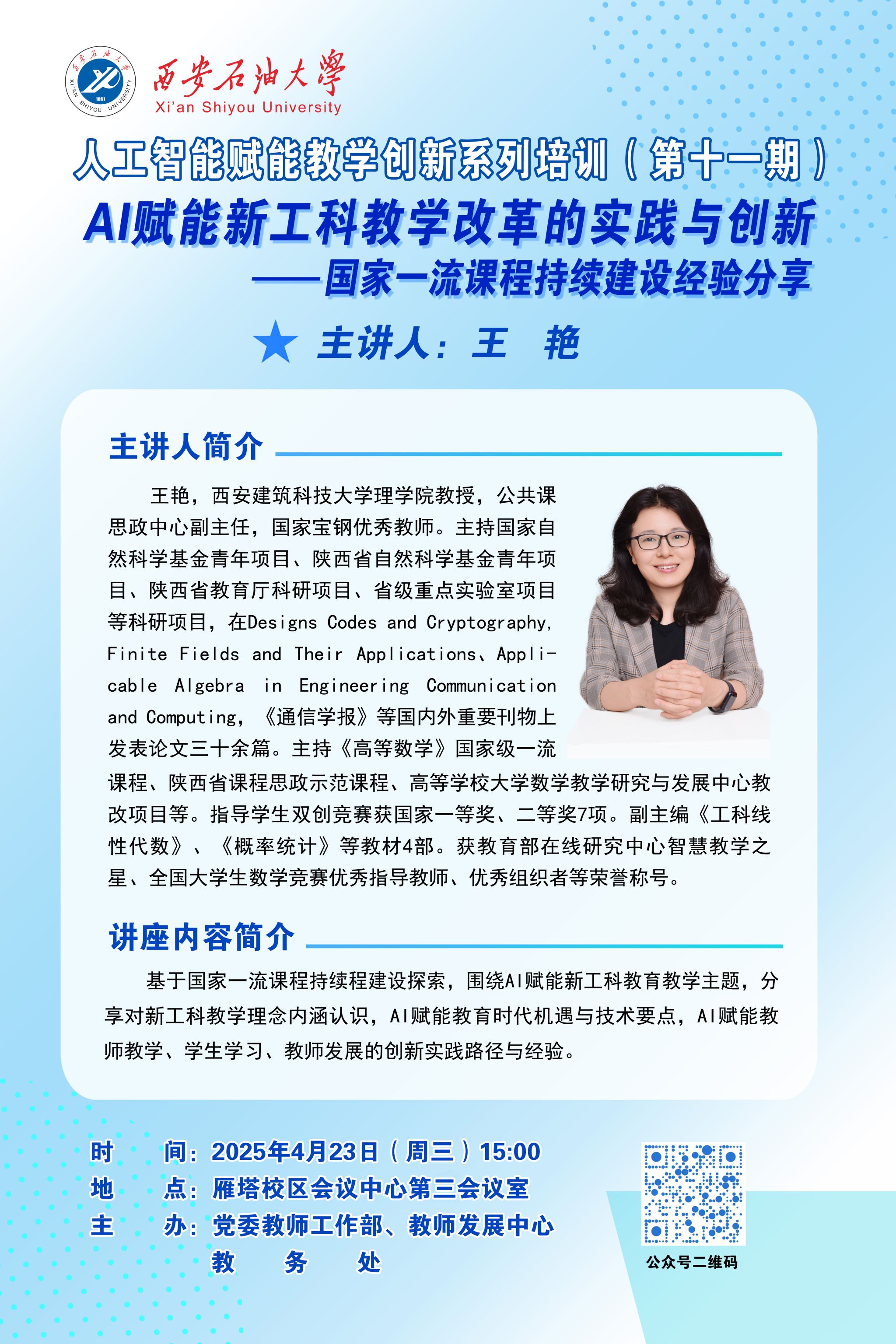 报告地点:雁塔校区会议中心第四会议室