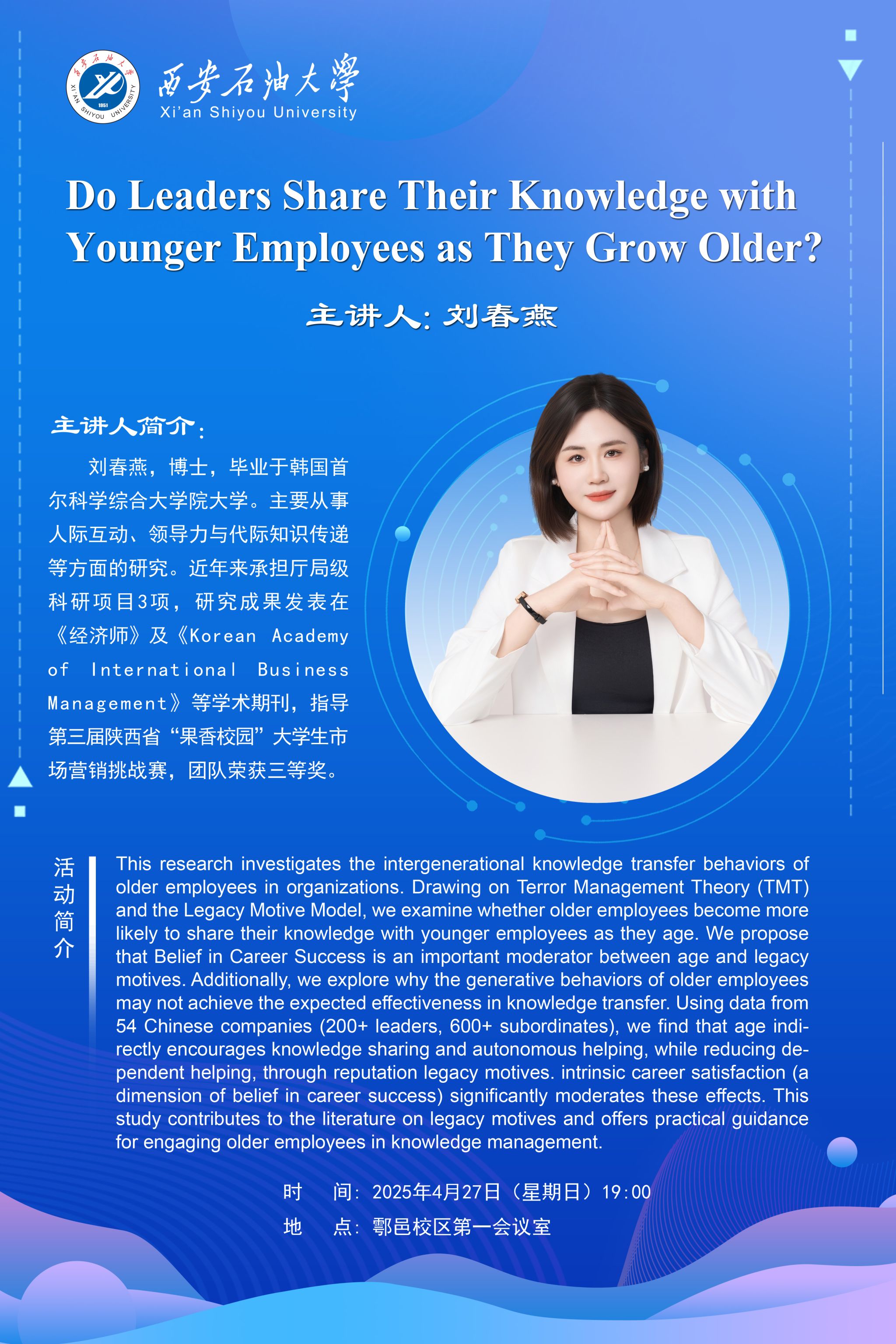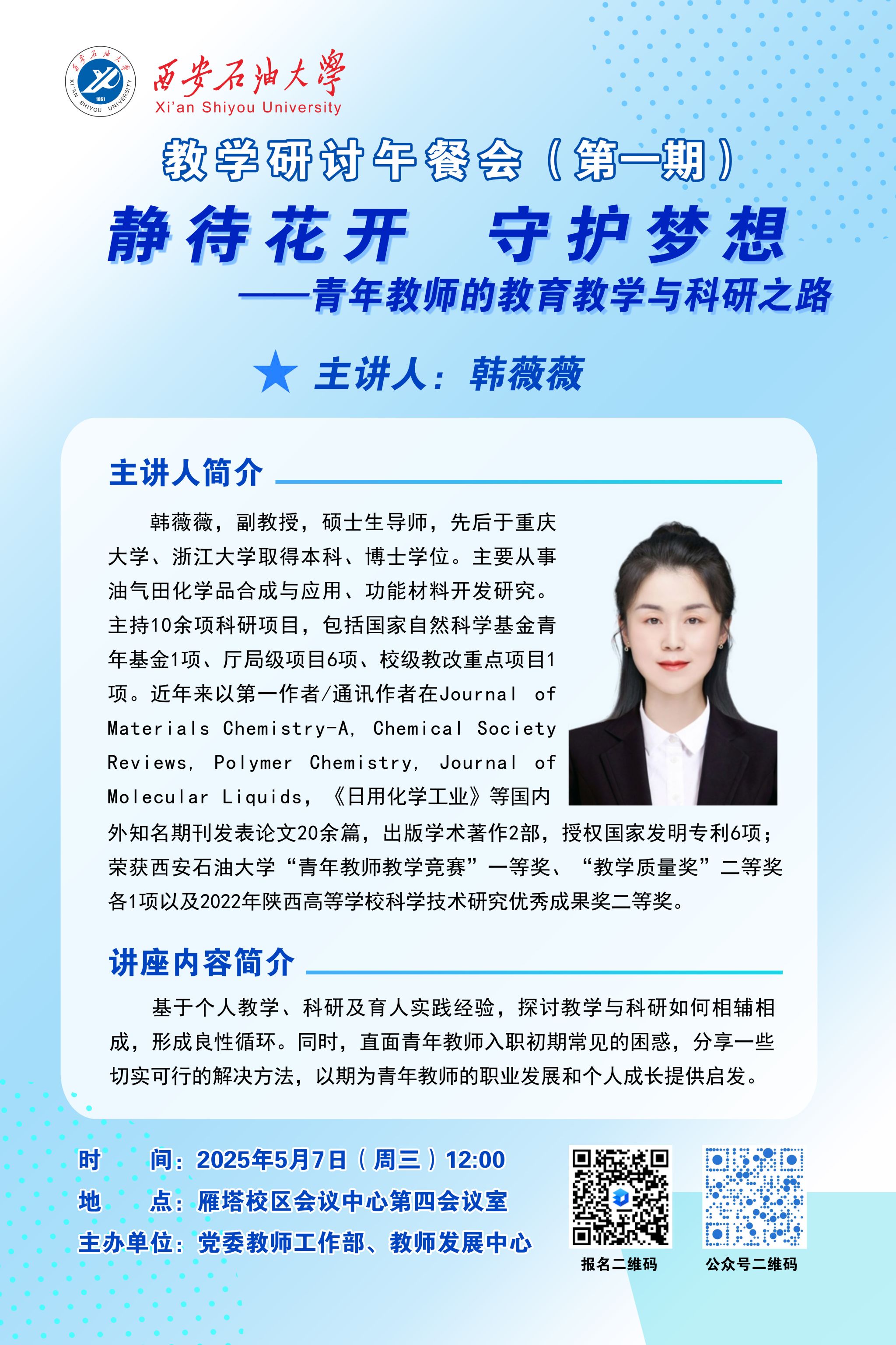 报告地点:雁塔校区会议中心第三会议室