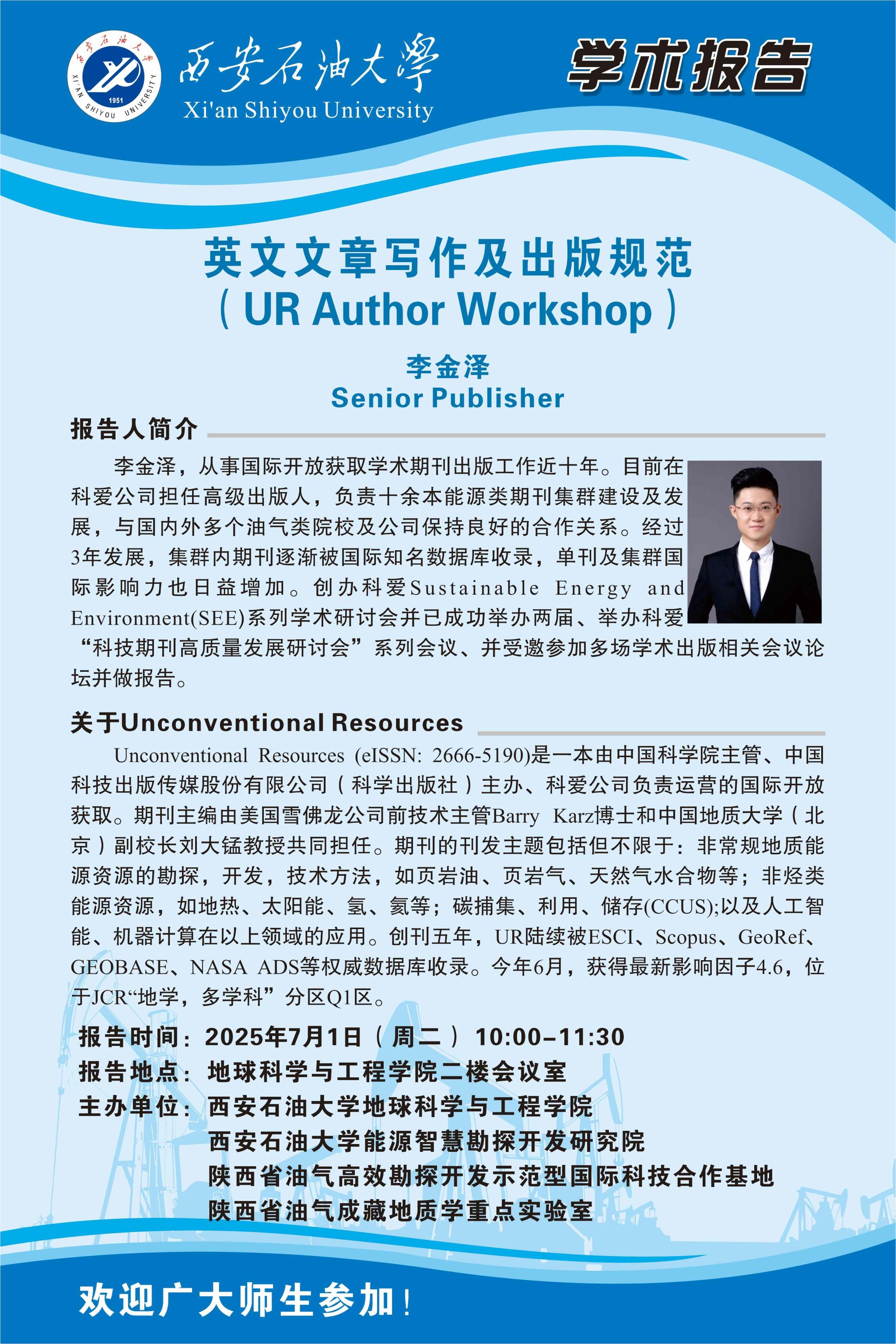 报告地点:地球科学与工程学院二楼会议室