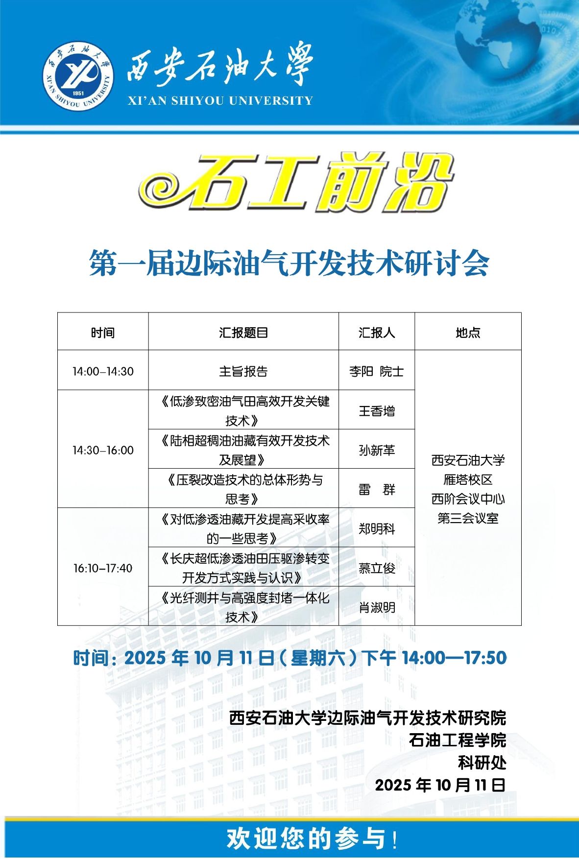 报告地点:雁塔校区西阶会议中心第三会议室