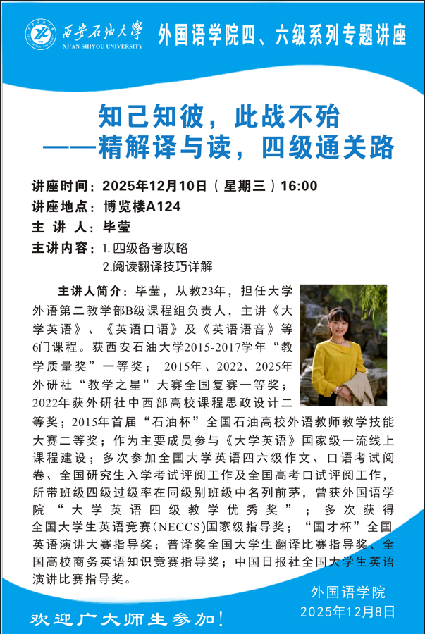 报告地点:鄠邑校区博览楼A108智慧大讲堂
